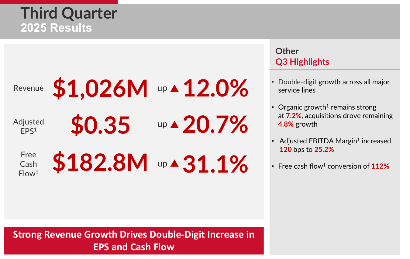 The company earned $1.03B in revenue in its Q3 25, which was 12% higher than the same quarter last year. Organic growth accounted for 7.2% of that increase while the rest came from acquisitions.