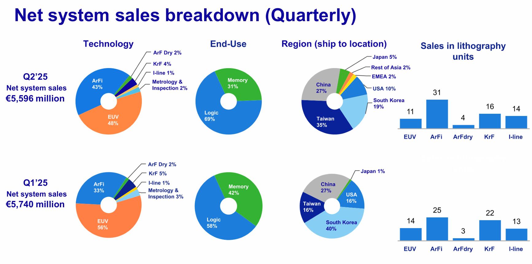 High-end technology. ASML shipped its fifth High NA EUV system in Q1 2025, now deployed at 3 customers, enhancing advanced chip production capabilities