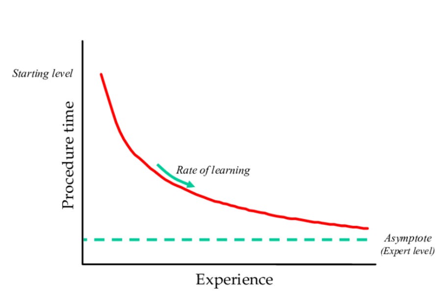 The fundamental principle behind the learning curve is that repetition leads to improved proficiency. For example, as workers repeatedly perform the same task, they become faster, make fewer mistakes, and identify more efficient ways of completing the task. This enhanced proficiency is due to both individual learning (people gaining more experience) and organizational learning (the company streamlining processes, improving workflows, and investing in better equipment).