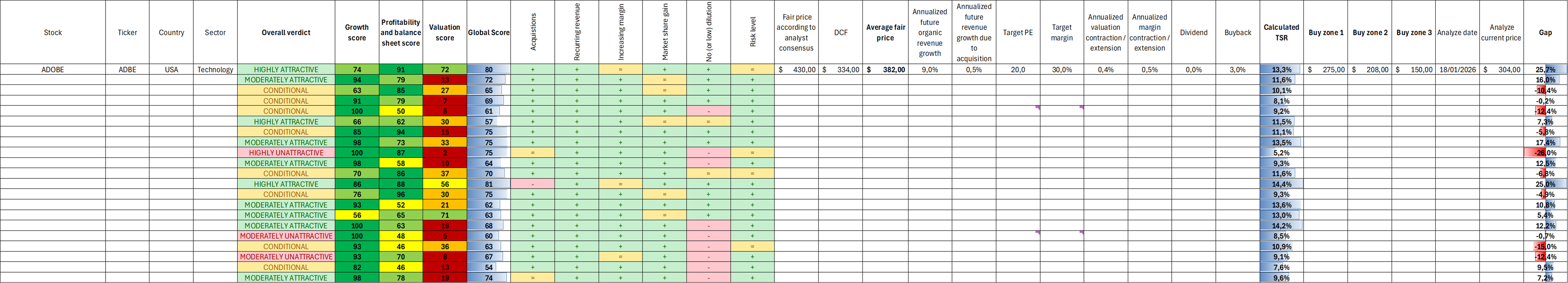 And a clear investment verdict: Attractive, Conditional or Unattractive